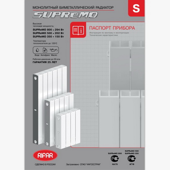 Биметаллический радиатор RIFAR SUPReMO Ventil 500 13 секций нижнее левое подключение. Биметаллический радиатор RIFAR SUPReMO Ventil создан для применения в системах водяного отопления закрытого или открытого типа. Рабочее давление 30 bar. Подключение радиатора нижнее. RIFAR SUPReMO Ventil 500 13 секций подходит для эксплуатации в отопительных системах жилых и административных зданий. В радиаторе нет ниппельных соединений, что обеспечивает отсутствие протечек. Радиаторы RIFAR SUPReMO Ventil производятся в России. Продукция RIFAR прошла сертификацию на соответствие требованиям ГОСТ 31311-2005 и учитывает особенности российских систем отопления. Уважаемые покупатели! По вашему желанию, мы можем покрасить радиатор в любой цвет, согласно RAL. Обращайтесь к менеджерам нашего магазина.